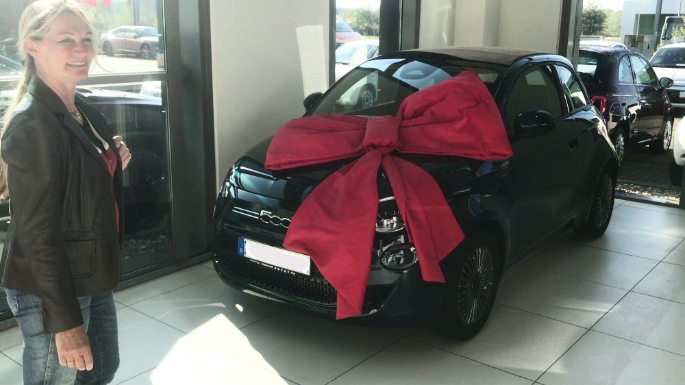 Zwischen gepackten Klamotten in Kisten und Reisetaschen hatte ich schon fast nicht mehr daran geglaubt, dass mein fahrbarer Untersatz noch pünktlich vor der geplanten Abreise kommt. Und dann klingelte das Telefon ... kaum machte das Geschäft am nächsten Morgen auf, stand ich vor der Tür. Gewienert und beduftet verschwand ein gutes Viertel des Autos unter einer riesigen roten Schleife. Sowas kannte ich nur aus Filmen und fand diese Präsentation beim Zugucken eigentlich immer ziemlich kitschig – als ich jedoch vor dem eigenen Wagen stand, fand ich es gar nicht mehr kitschig, sondern einfach nur wunderschön. Ich kann wohl nicht aus meiner Haut, Mädchenkram eben :-) Gestern las ich blöderweise in einem Forum über die Ladesäulenversorgung in Spanien eine Story, die Gruseliges berichtete von defekten Säulen, nicht vorhandenen Säulen und anderen Säulenproblemen – egal, irgendwas wird sich schon ergeben, um an Strom zu kommen. Morgen geht es los.
