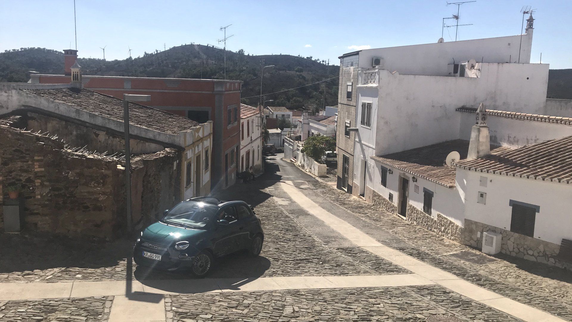 Das Leben kann leicht sein in Portugal, das Laden indes nicht so ganz. Zehn Tage sind seit meinem letzten Beitrag im Blog vergangen, und ich kann nicht sagen, dass sich viel getan hat in der Erweiterung meiner Lademöglichkeiten. EDP hat per Mail angekündigt, mich am kommenden Mittwoch anzurufen. Miio präsentierte letzte Woche in seiner App eine Preisauskunft von 23 ct pro kWh – abgerechnet wurden 63 ct. Mein Kommentar an Miio dazu blieb bis jetzt unbeantwortet, aber immerhin kann mit dieser App laden. Via Verde verlangt ein portugiesisches Bankkonto. ShellCharge scheint mir noch die beste Wahl – hätte ich nur die Karte, die ja nach Auskunft des Shell-Services nur nach D versendet werden kann und die auf dem Weg dorthin ist. Bei der Nachfrage, ob sie schon an meine Heimatadresse versendet wurde, geriet ich an eine sehr freundliche Beraterin mit irgendwelchen Kontakten nach Portugal. Sie sendet mir tatsächlich eine zweite Karte an meine portugiesische Adresse. Ich bin gespannt, welche zuerst ankommen wird! Leider war mir die Sache mit ShellCharge nicht bekannt, sonst hätte ich den Kartenantrag schon angestoßen, als ich noch in D war. Dann wäre da noch GALP, ein Tankstellenunternehmen. Sie scheinen tatsächlich die deutsche Bankverbindung zu akzeptieren, zumindest habe ich einen so ausgefüllten Vertrag von GALP erhalten, den ich heute unterschrieben zurücksendete, um ihn zu bestätigen. Die physische Ladekarte habe ich schon, nun muss sie nur noch freigeschaltet werden. Ganz schön verworren, das Ganze, und ich bemühe mich, nicht die Übersicht zu verlieren. Viel übersichtlicher sind die schönen Tage hier. Ich wohne derzeit in einem Restbauernhof mit Katzen, Hunden und Hühnern und recht großen Ländereien, nicht weit von Tavira entfernt. Einen Schreibtisch hatte ich mir gleich nach meiner Ankunft eingerichtet, um arbeiten zu können. Allerdings ist die Verlockung groß, in der Gegend herumzustreifen. Pebbles macht sich perfekt hier, er passt durch die kleinsten Gässchen, scheut sich nicht vor Schotterwegen und packt mit seinem E-Motor Steigungen, als ob es nichts wäre. Die Touristenströme, die allerdings hier im Osten (ungerechtfertigterweise) wesentlichen geringer ausfallen als an der westlichen Algarve, lassen von Tag zu Tag nach, obwohl das Wetter mit Temperaturen um die 25 Grad richtig angenehm ist. Ein Schauer ab und zu lässt der vom Sommer ausgetrockneten Erde und den Pflanzen die betörendsten Düfte entsteigen. Ein Hauch von Orangenblüten, Duftgeranien und Frangipani kann mir fast die Sinne vernebeln. Die Nächte sind mild und ruhig bis auf gelegentlich kläffende Hunde. Die auf dem Hof residierenden Hähne halten sich mit den Hennen in der Nacht – weit genug von Wohnhaus entfernt – auf und in ihrem eigenen Hühnerhaus auf, so dass sie mich nicht zwei Stunden vor Sonnenaufgang mit ihrem kräftigen Krähen aus dem Bett werfen. Sie interessieren sich allerdings tagsüber sehr für das Auto – lasse ich eine Minute die Tür auf, ist mindestens ein Huhn drin. Und die Farbe der Katzenhaare auf dem Textilverdeck verraten mir, wer sich dort in der Nacht ein gemütliches Plätzchen einverleibt hatte.
